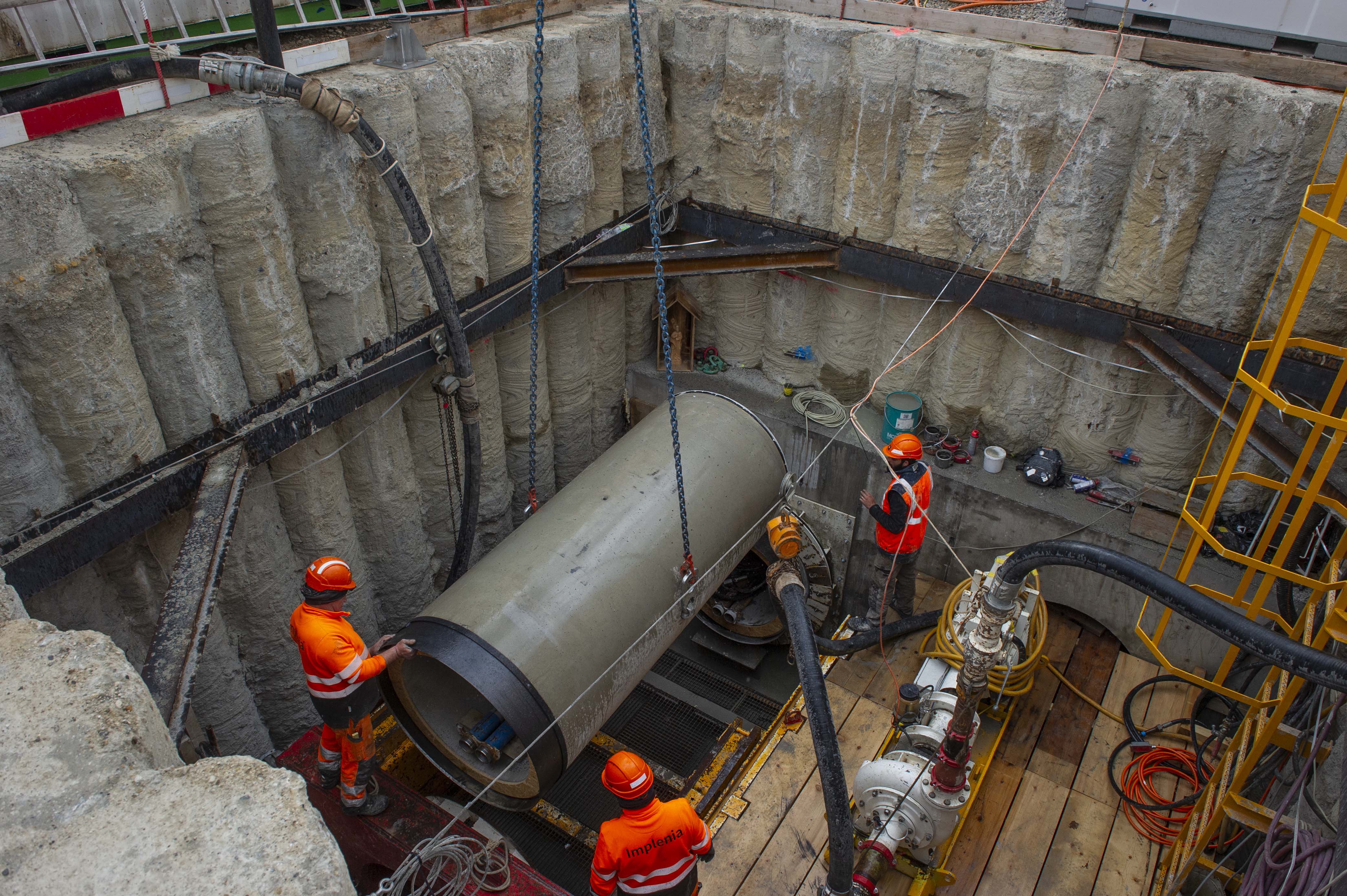 Ce chantier est l'un des plus importants de l'ensemble des travaux de la nouvelle station d'épuration puisqu'il impliquait de traverser les voies CFF à plusieurs mètres sous terre.