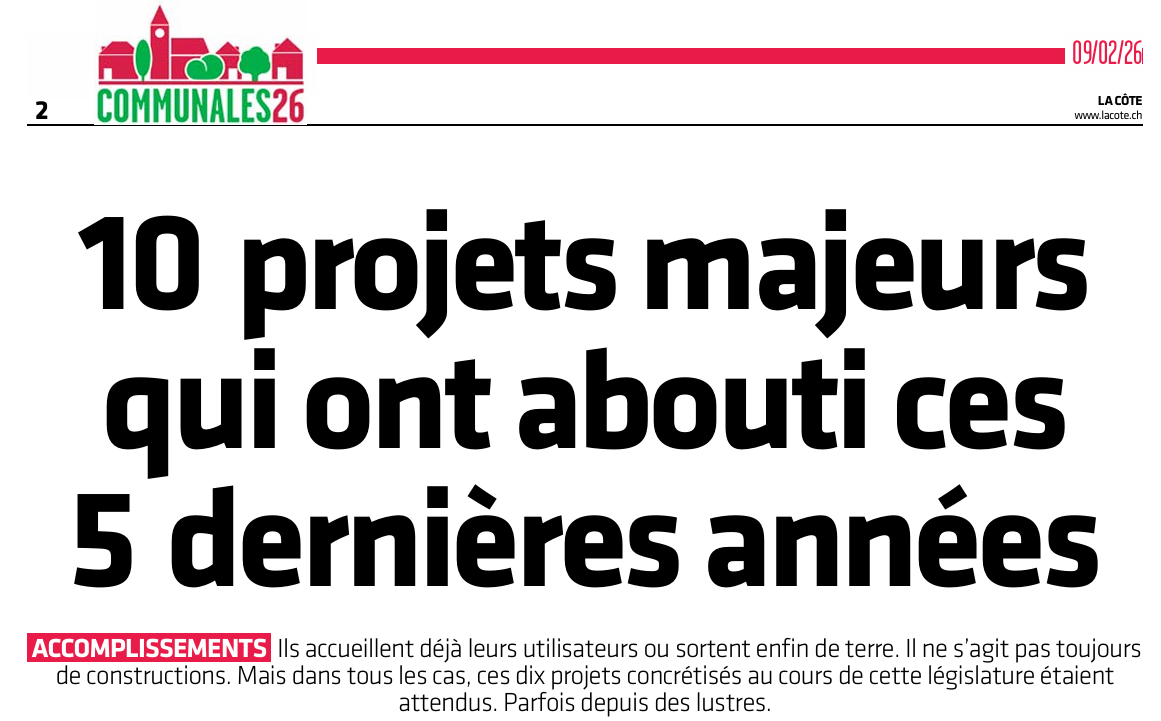 Le journal La Côte publie ce lundi 9 février 2026 une enquête sur les chantiers majeurs de notre région.
