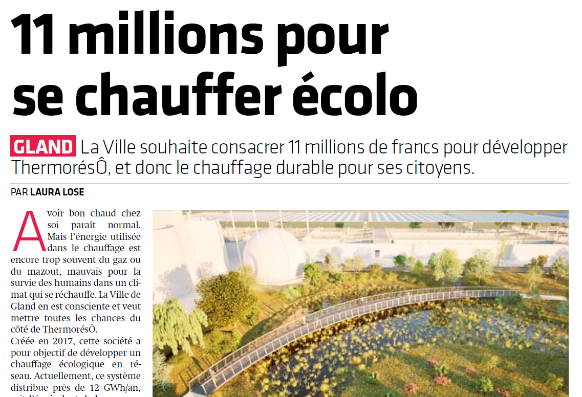 La Ville de Gland propose, par l'entremise de l'entreprise ThermorésÔ-Gland, de récupérer la chaleur produite par la future step-apec Lavasson afin de la réinjecter dans le réseau de chauffage à distance. Pour cela, la Ville de Gland souhaite investir de l'argent.